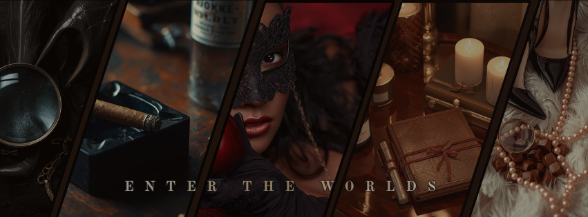 This is the core narrative universe — a realm of noir mysteries, psychological tension, forbidden longing, and stories that explore what people become when no one is watching. Each experience invites you into dark emotional landscapes where intellect, desire, and power quietly collide.
